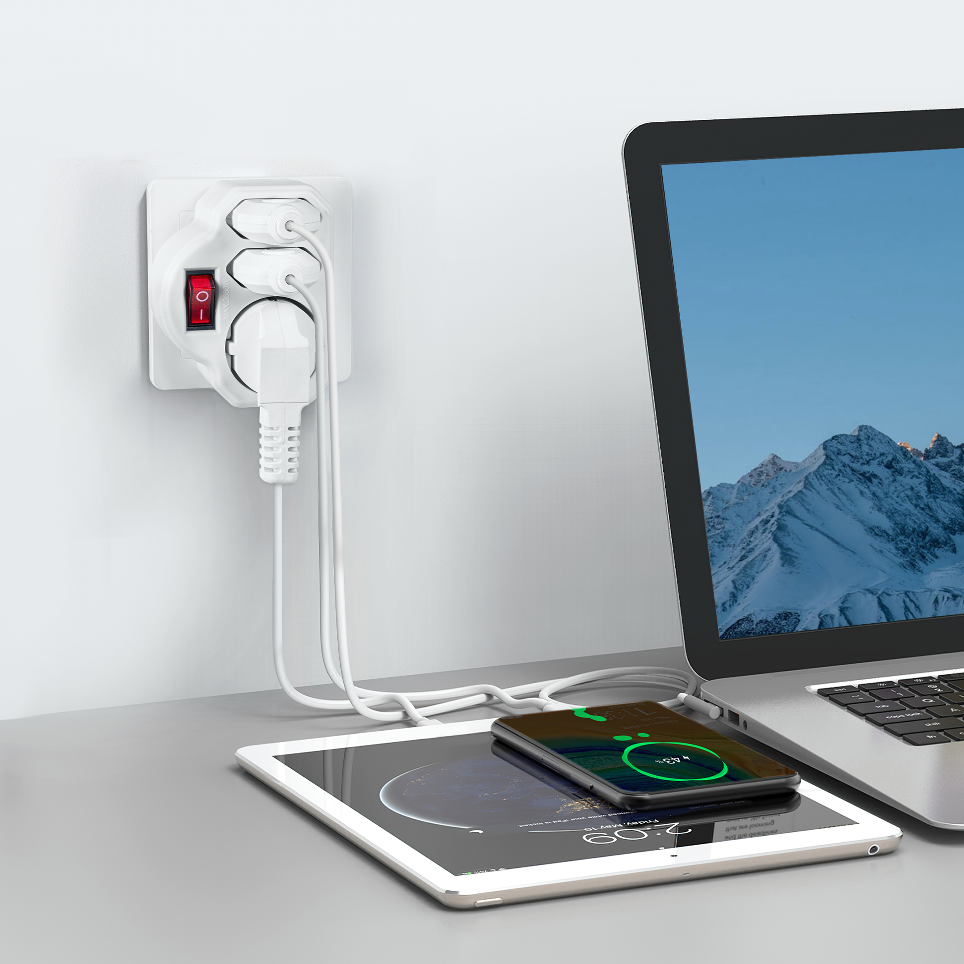 GlamPiece Double Wall Outlet Adapter with switch, 3-Outlet, PC Flame Retardant